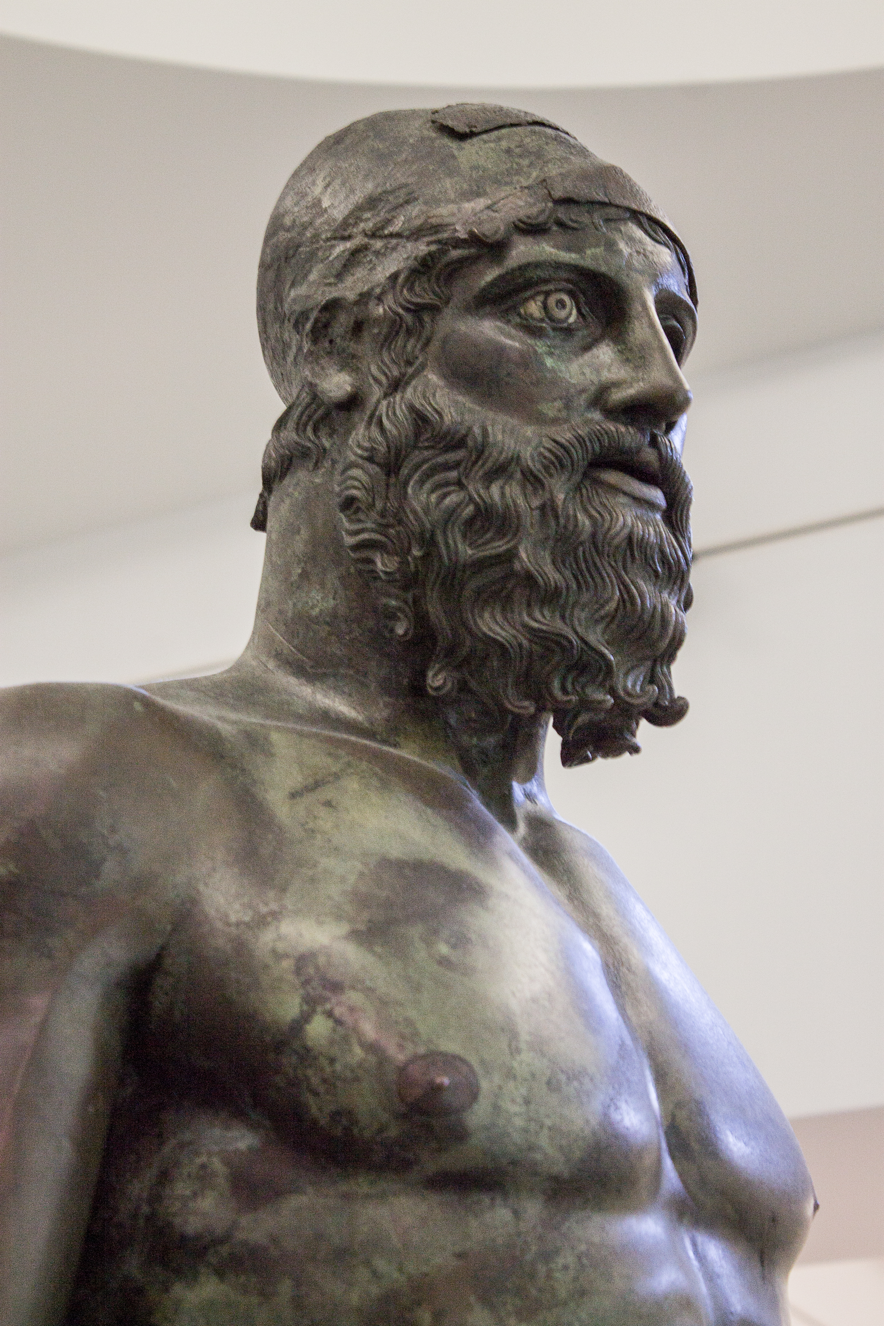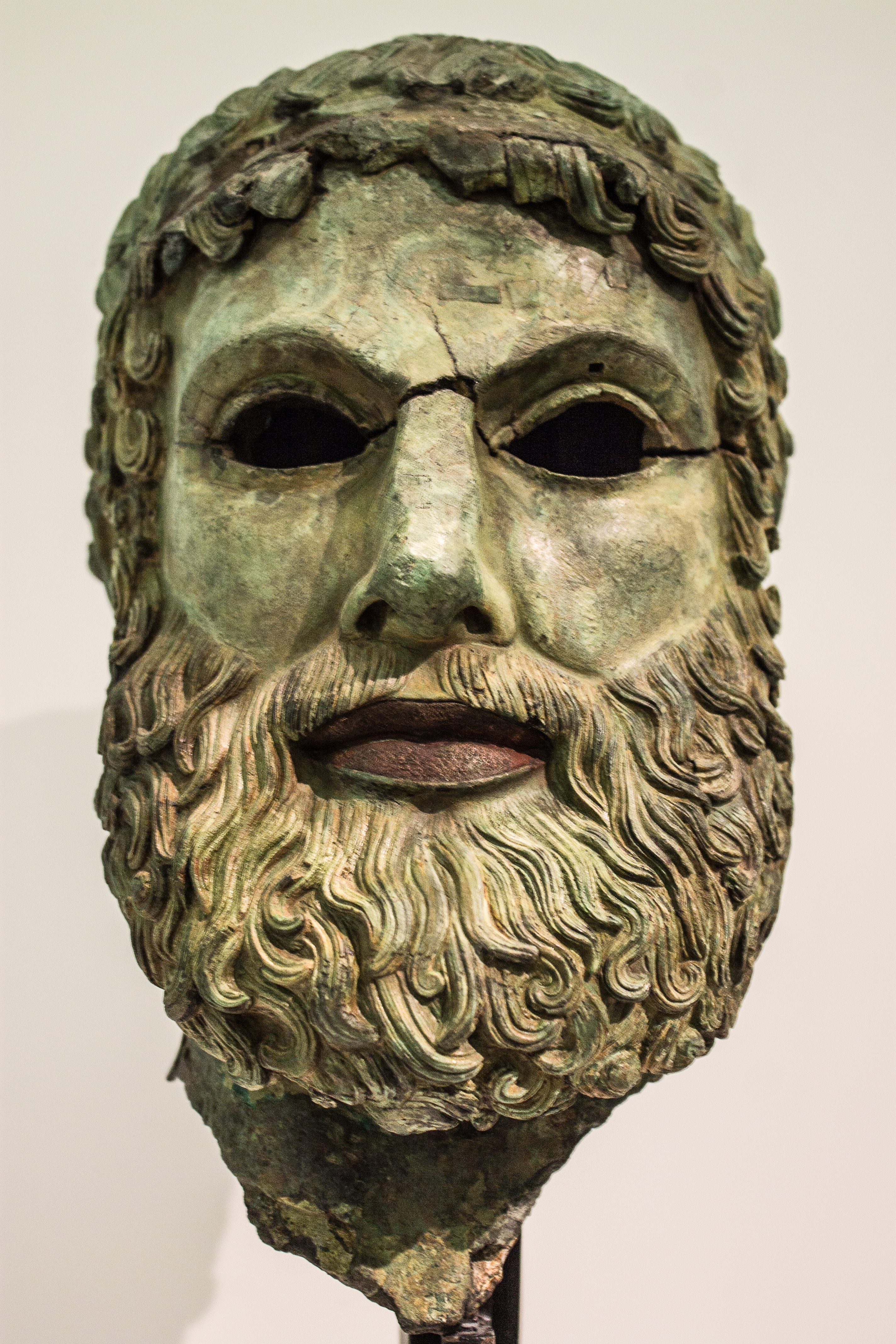 Trovate qualcosa di più assoluto del mare? Distesa di un blu che porta il suo nome, ribelle custode di segreti, unisce e divide terre e popoli, come una gazza nasconde tesori e, per la sua natura generosa, a volte decide di lasciarli riemergere. Tutto parte dal mare, anche questa mia giornata in cui ho sete di meraviglie antiche. Il traghetto si culla sulle stesse onde che per secoli hanno serbato il relitto di Porticello ed i suoi tesori. Così, anche lo Stretto di Messina ha i suoi bronzi: sono delle teste maschili, una detta del Filosofo, un esempio finissimo di ritrattistica, e quella di Basilea fresca fresca di restauro, che fanno compagnia agli esemplari di Riace, in una speciale sala climatizzata del Museo Archeologico di Reggio Calabria. Incredibili quanto i loro cugini più “alti”, se non di più, nella raffinatezza della lavorazione delle ciocche di barba e capelli, nella caratterizzazione psicologica delle espressioni rese con chiaroscuri creati dalle rughe della saggezza in uno, e nella geometria esatta del taglio del naso nell’altro.