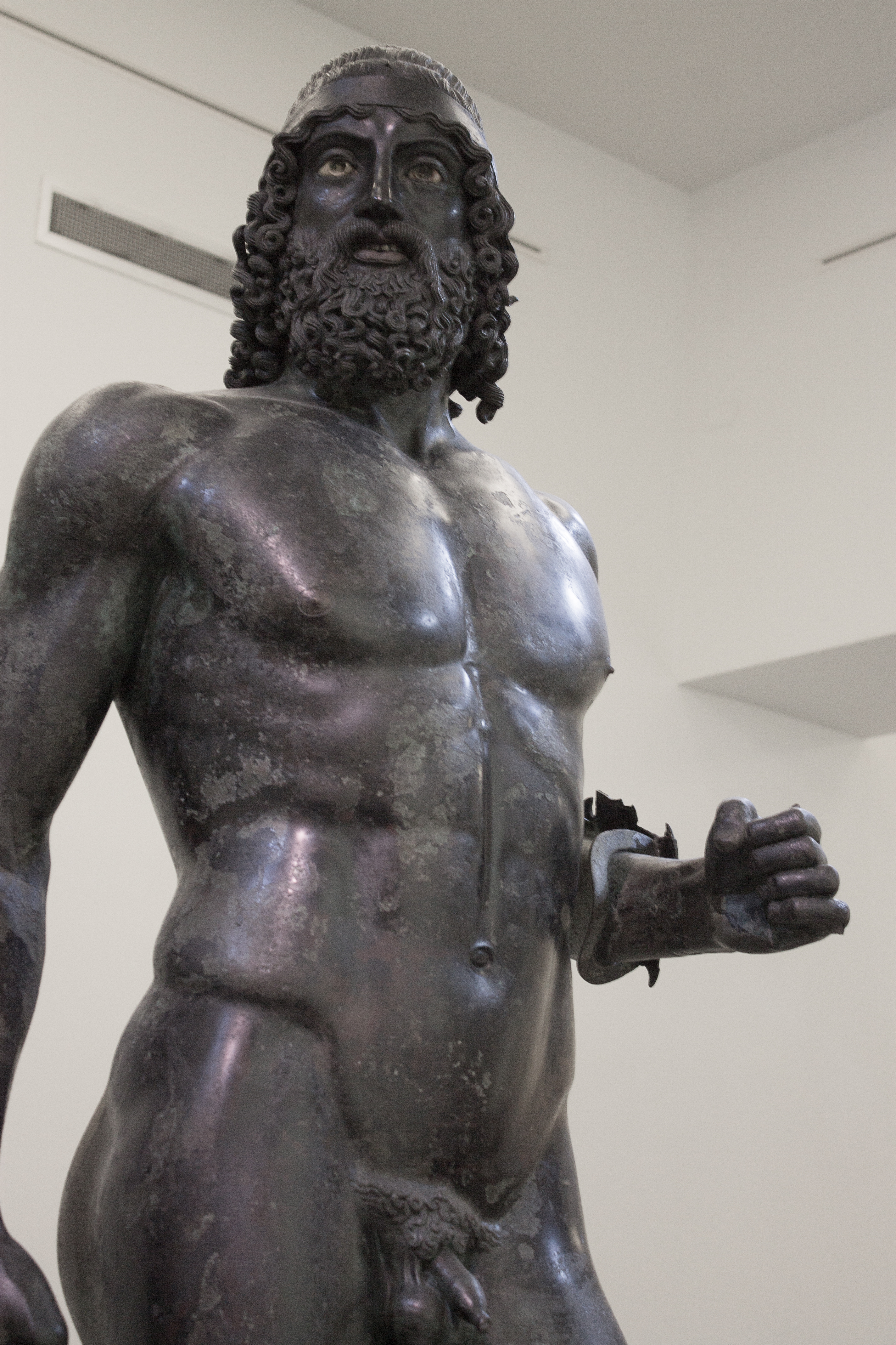 lo sguardo magnetico del Bronzo A invita a raggiungerlo attraversando la porta, fiero e un po’ corrucciato con le sue labbra color rame.