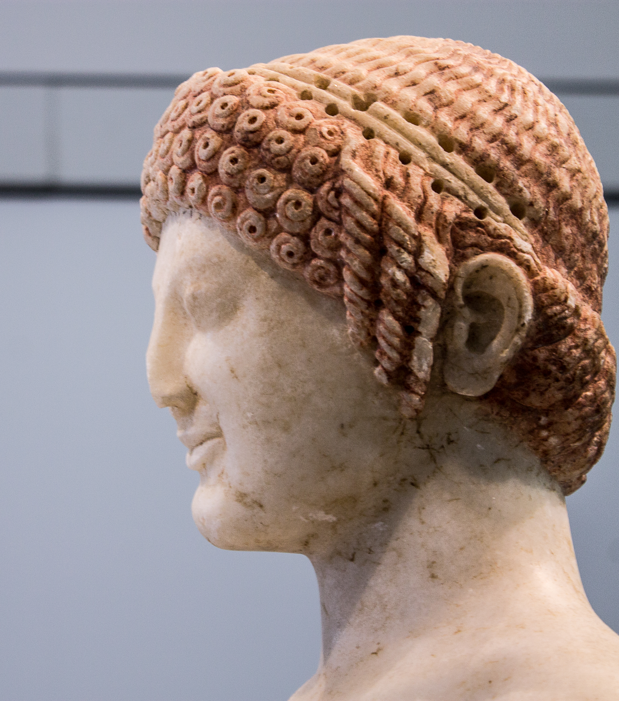 In questo spazio che prelude al termine dell’esposizione, ammirando il candido Kuros di Reggio dai boccoli porpora,