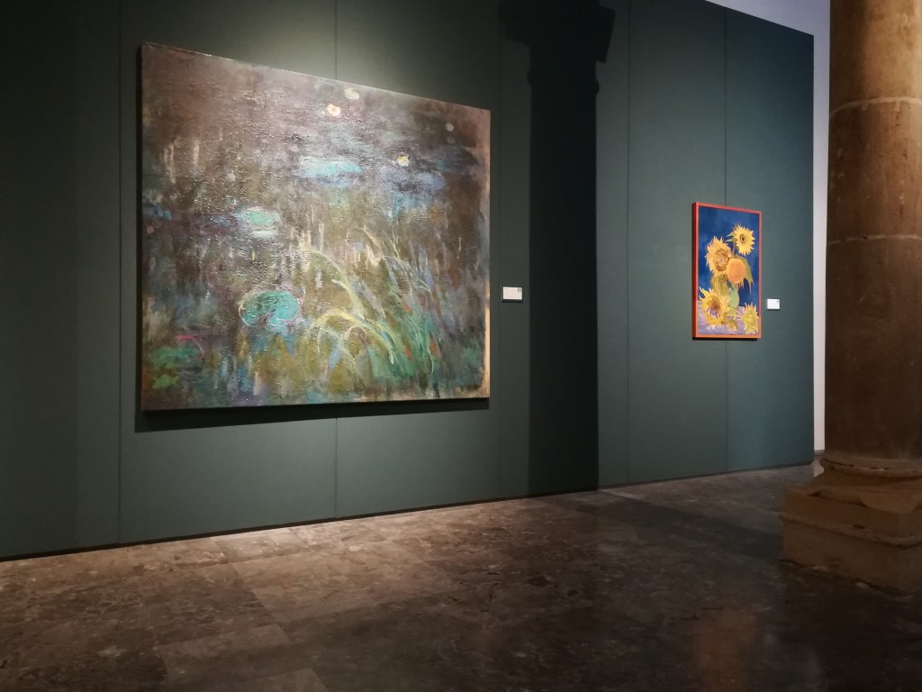 In questa occasione ho avuto modo di conoscere una realtà come Factum Arte, una società con sede a Madrid che si occupa dell’applicazione delle più moderne tecnologie nel campo artistico, la stessa che ha elaborato un perfetto clone del Merrisi rubato oggi esposto nell’oratorio. Oltre ad aver messo un cerotto alla ferita palermitana ha recuperato la memoria di quadri di Monet, De Lempicka, Marc e Van Gogh. Attraverso la storia documenta di opere scomparse delle quali restano solo foto e documenti, con lo studio della tecnica degli artisti, dei loro cambiamenti tecnici, della chimica dei colori utilizzati in altri pezzi, e l’analisi delle circostanze in cui fu realizzata, il dipinto vittima degli eventi viene ricreato, con altissima fedeltà di stile e composizione. Incrociando questi fattori, l’equipe di Factum Arte riesce a far rinascere quel che ormai non è più possibile ammirare, restituendo dignità all’impegno dell’artista. Nonostante si sia coscienti si tratti di elaborazioni grafiche, la sensazione è proprio quella di trovarsi davanti ad un’opera autentica, probabilmente anche grazie all’attenzione che è stata data allo spessore delle pennellate ed agli espedienti prospettici e tridimensionali in uso da ogni autore: così da ciò che rimase delle Ninfee di Monet, illeggibili a causa di un incendio, ne è stato estratto un plastico materico, e ad ogni stop del pennello un’altezza, ogni trascinamento una scia, non potendone riportare con fedeltà i colori autentici è stato realizzato in bianco, tono che a luce radente lascia risaltare questo aspetto del modus operandi dell’impressionista.