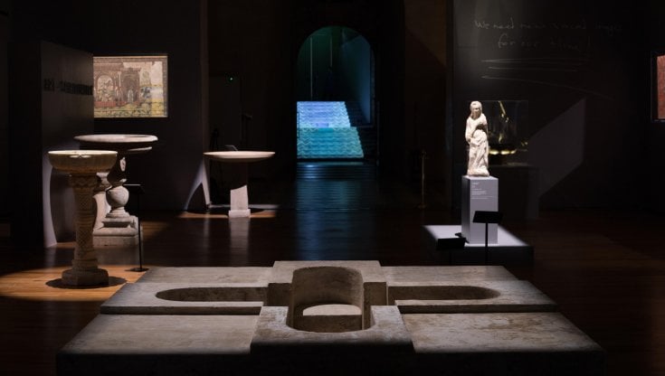 Tutto intorno a noi, antichi fonti battesimali, paliotti e sculture della collezione del Palazzo Reale, reperti che nella religione cristiana, islamica e pagana rimandano all’acqua ed alla sua ancestrale funzione purificatrice per l’anima. Riportata sui muri su più punti la frase su cui Bill Viola basa la filosofia della mostra: